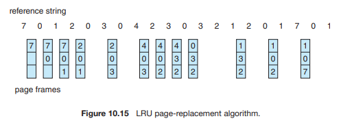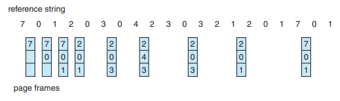data[i][j] = 0;注意数组是按行主序(row major)存储的.对于 128 个字的页面,每一行占用一页。因此,前面的代码先将每一页中的一个字清零,然后将每一页中的另一个字清零,依此类推。如果操作系统为整个程序分配的帧少于 128 个,那么它的执行将导致 128 * 128 = 16,384 次缺页错误。