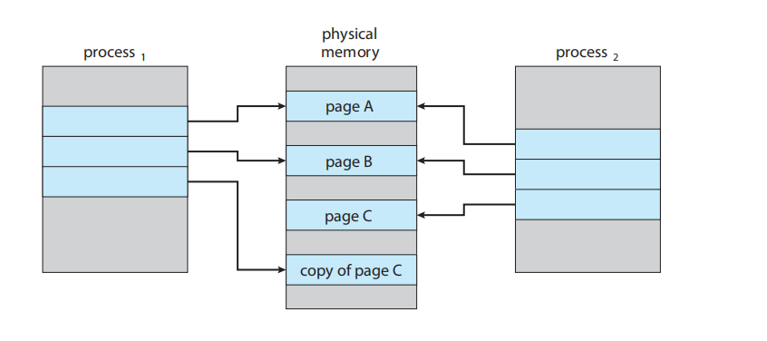 我们可以使用一种称为写时复制 (copy-on-write, COW) 的技术,它通过允许父进程和子进程最初共享相同的页面来工作。这些共享页面被标记为“写时复制”页面,这意味着如果任一进程(父进程或子进程)写入一个共享页面,系统就会创建该共享页面的一个副本