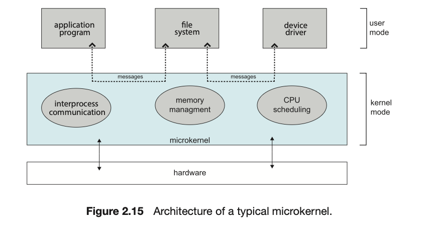 不幸的是,微内核的性能可能会因系统功能开销而受到影响。由于消息必须在用户空间中的服务和内核之间复制,因此通信开(销)会增加