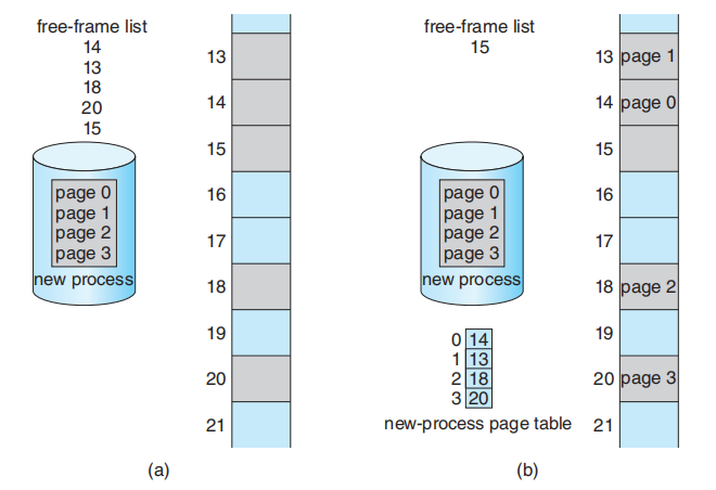 我们找到一个空闲帧 (free frame)(例如,从空闲帧列表中取一个 ( 在 physical memory ))。