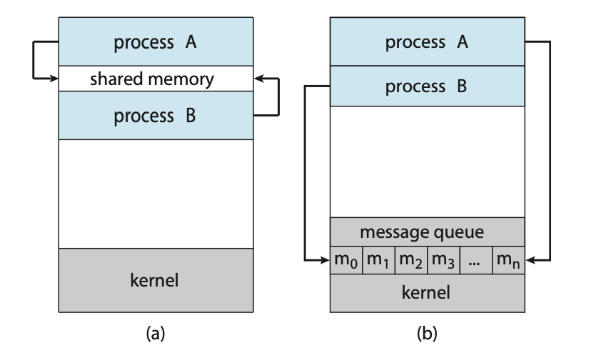 可以在同一台计算机上的进程之间进行,也可以在网络上不同计算机的进程之间进行。主要方式有share memory和message bypassing。