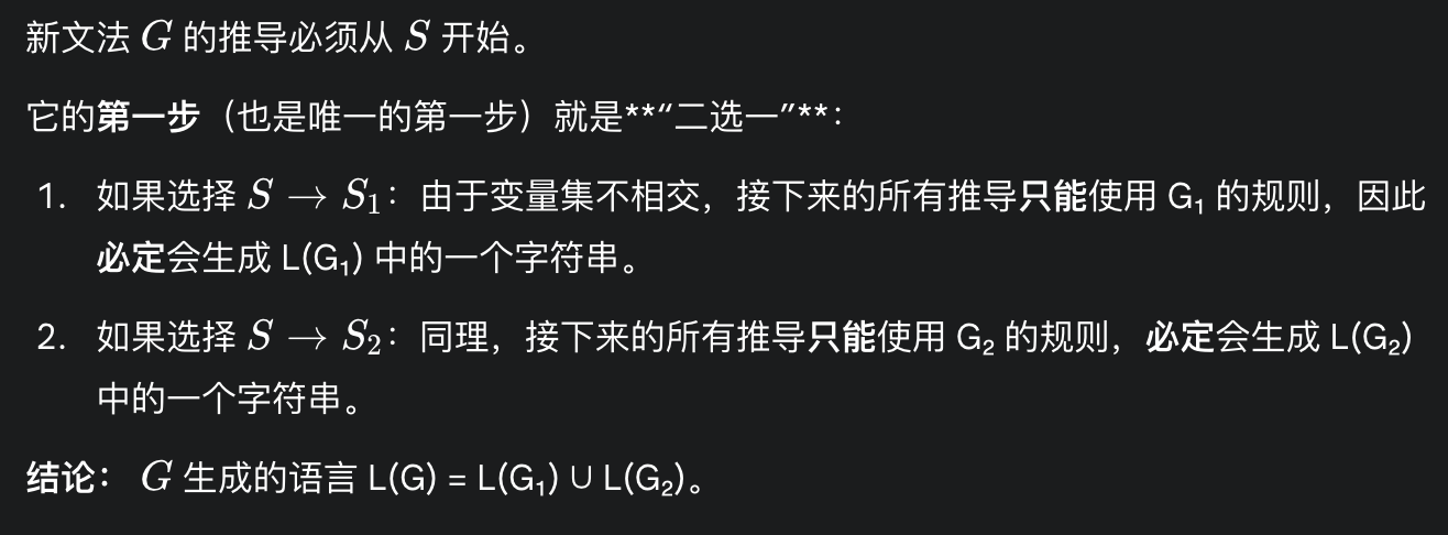 重要假设: 我们假设 G₁ 和 G₂ 的非终结符 (变量) 集合是不相交 (disjoint) 的