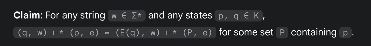 (q, A, p) 代表所有能被 PDA M' 读入的输入字符串 w 的集合,这些w必须满足以下条件