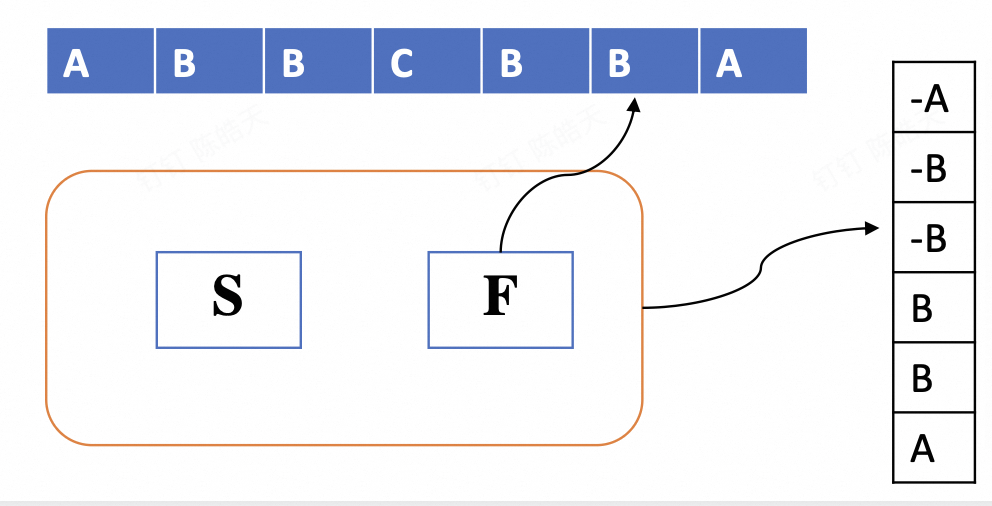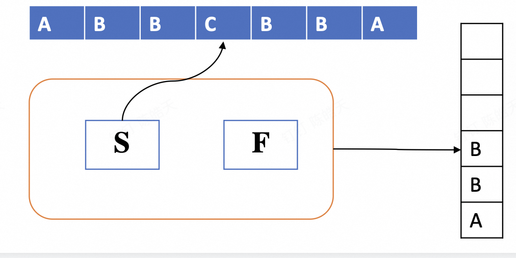 格局为DFA在计算过程中的一个快照, 保存以下信息: 当前状态、未来要读的输入