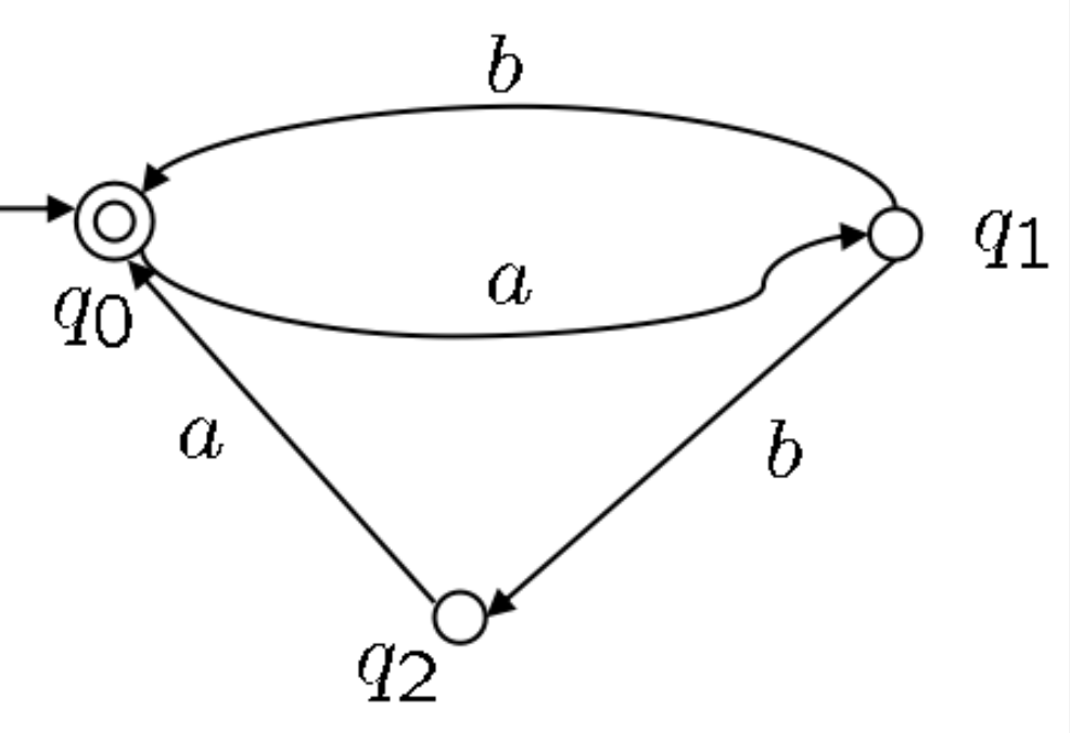 w ∈ Σ*is said to be accepted byMiff there is a stateq ∈ Fsuch that(s, w) ⊢* (q, ε).自动机的语言L(M):