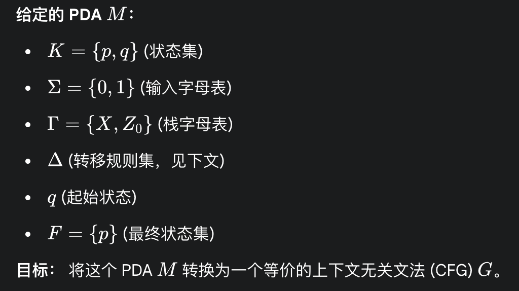 目标是构造 上下文无关语法 G = (V, ∑, R, S), 使得G 生成的语言L(G) 与 M' 接受的语言 L(M')完全相同