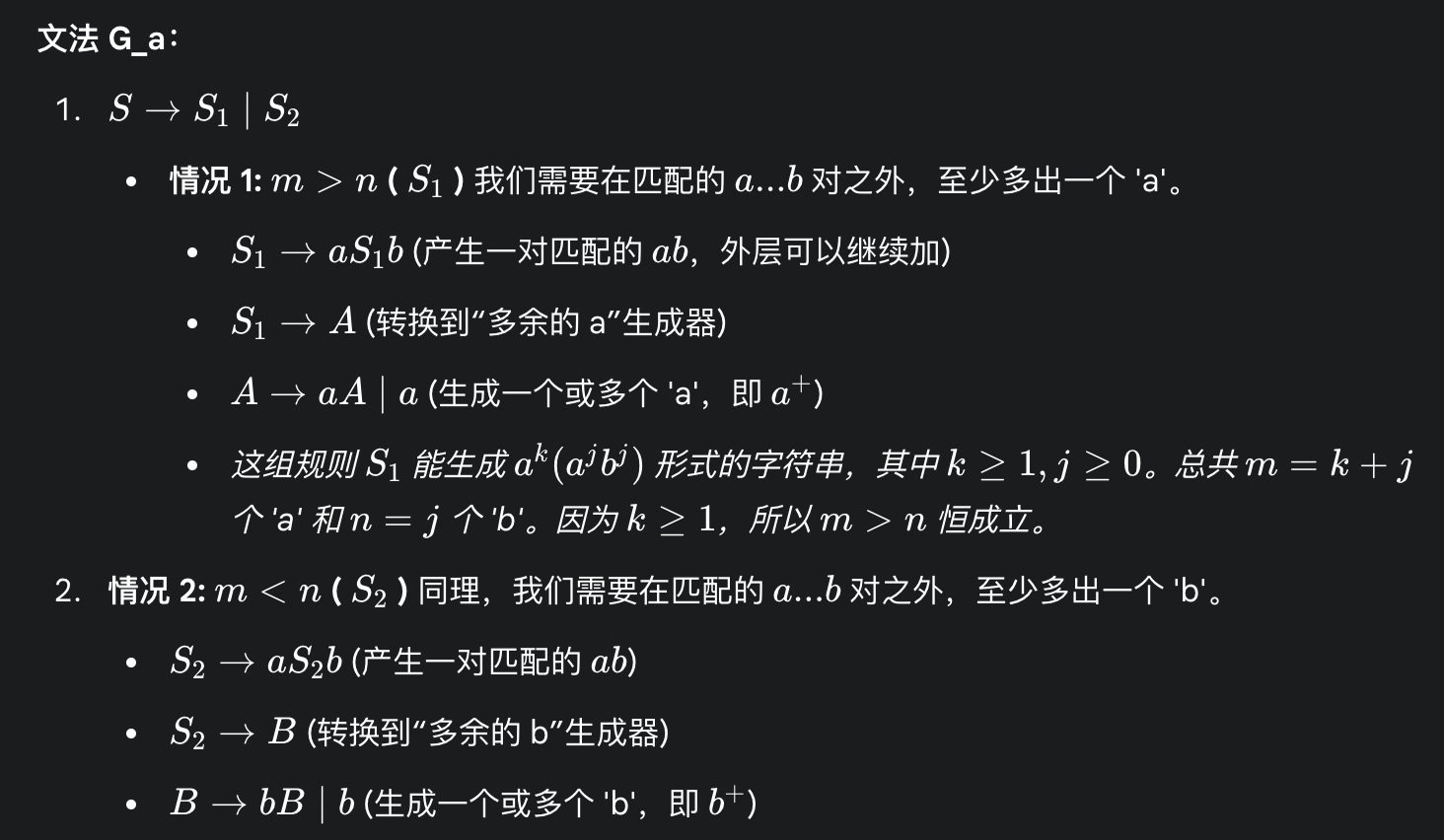 可以这样化 : ({𝒂, 𝒃}∗ 中b都在a后面的字符串 ,且a b数量不等 ) ∪ ({𝒂, 𝒃}∗ 中存在 b 在 a 前面的那些字符串 )