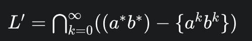 {a, b}* - L , where L is the language L = {babaabaaab...ban-1banb : n ≥ 1}